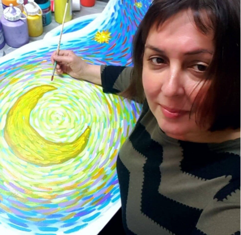 Her work explores color, everyday life and expressive figurative compositions developed over more than three decades of artistic practice.