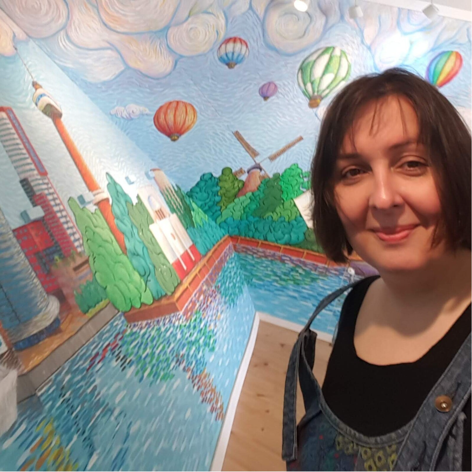 The master bedroom was painted in the style of Van Gogh by Erika Stanley and showcases the iconic buildings of this wonderful city.